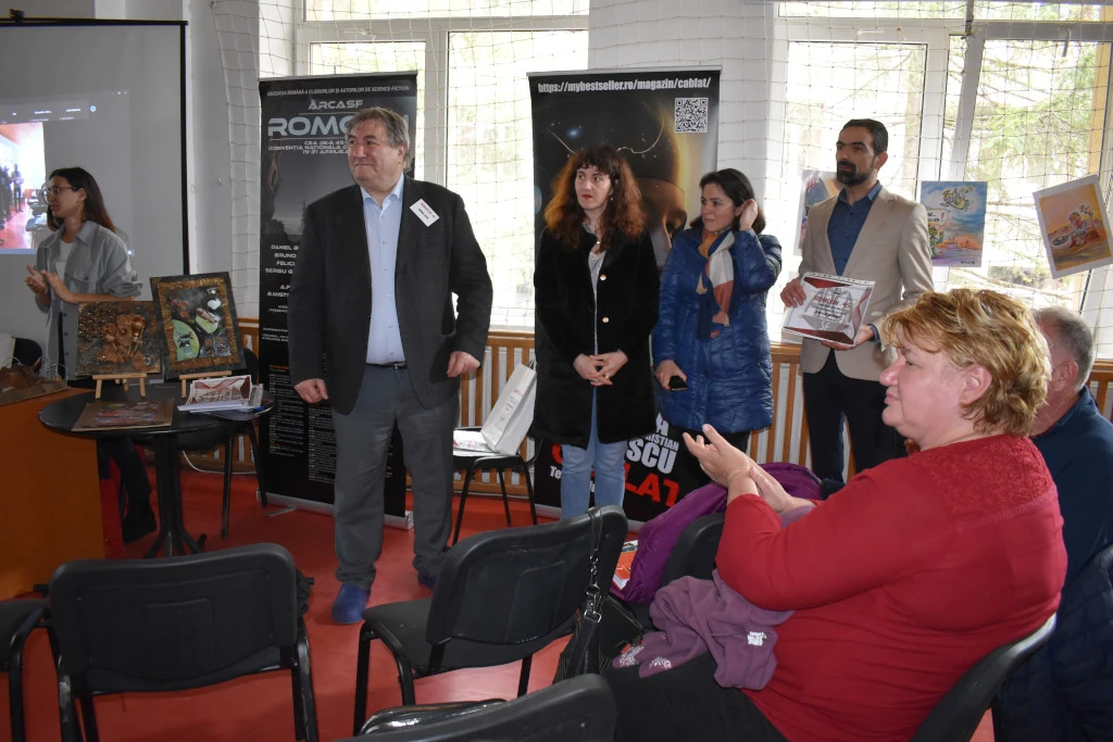E.C.: În primul rând, probabil că ar trebui să pornim de la a da Cezarului ce-i al Cezarului, adică să vă spun că poate nu eu sunt cea mai potrivită persoană pentru a răspunde la această întrebare, pentru că greutatea organizării a fost dusă de către președintele ARCA SF, domnul Cornel Secu, dar, în principiu, probabil că dificultatea principală a fost în remobiliza oamenii să se întâlnească fizic după patru ani și mai bine de întâlniri online, de a-i mobiliza să facă efortul de a fi prezenți cu toții în număr atât de mare într-o anumită localitate și într-un anumit moment, și, în al doilea rând, efortul a constat în a găsi sprijin din partea autorităților locale; pentru că autoritățile locale, deși la nivel declarativ susțin cultura și manifestările culturale, când vine de vorba de a face ceva la modul concret, lucrurile se întâmplă foarte greu și pot exista situații în care chiar să nu se întâmple nimic, de aceea faptul că la Bușteni a fost găsit un punct de sprijin solid în liceul Kalinderu, în conducerea acestei instituții de învățământ, a ajutat foarte mult la desfășurarea evenimentului nostru.